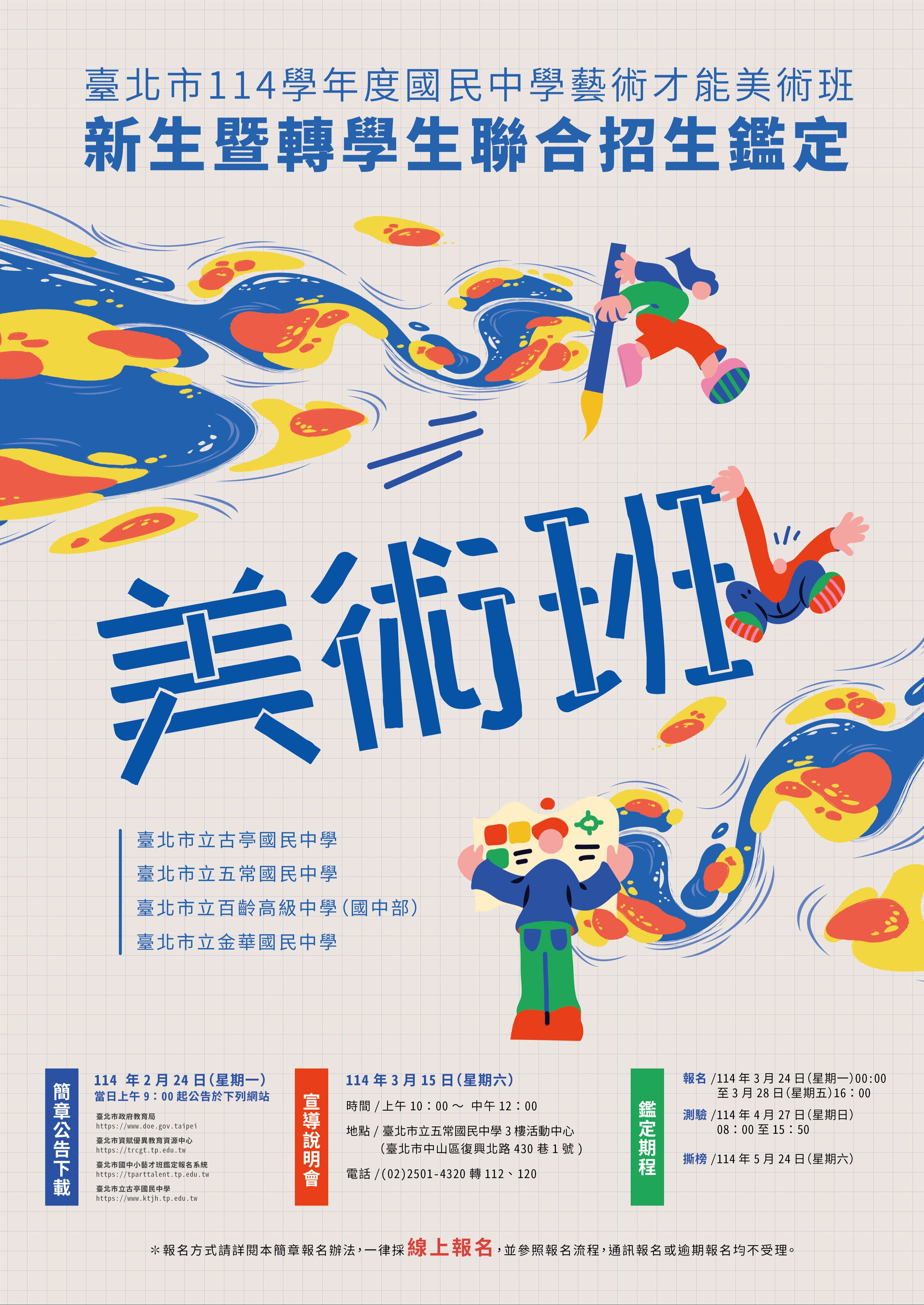 114學年度招生鑑定報名自114年3月24日(星期一)0:00至 3月28日(星期五)16:00,3月15日宣導說明會,