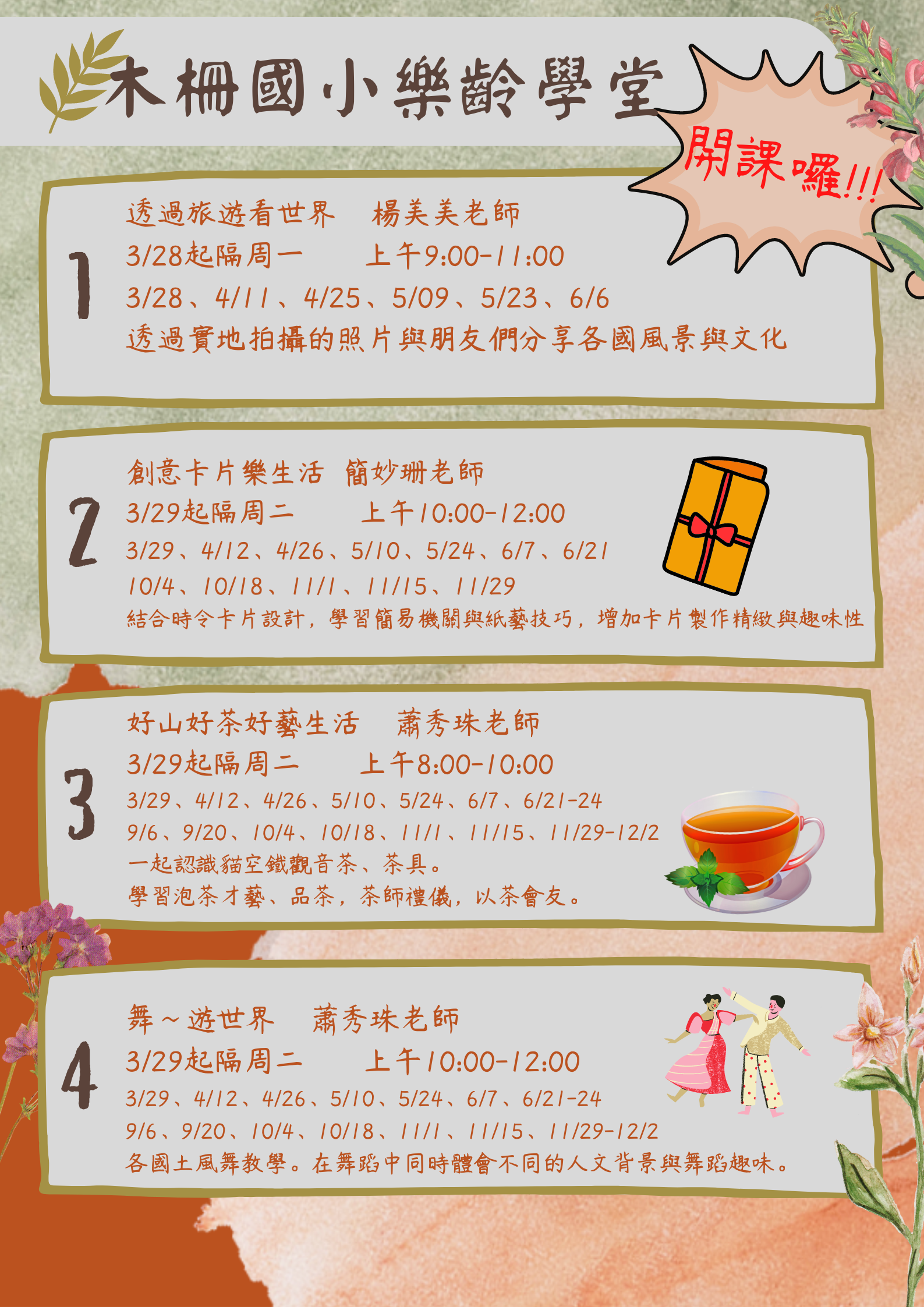 ※每一門課程最高限額為15名,已先報名的人做優先錄取喔