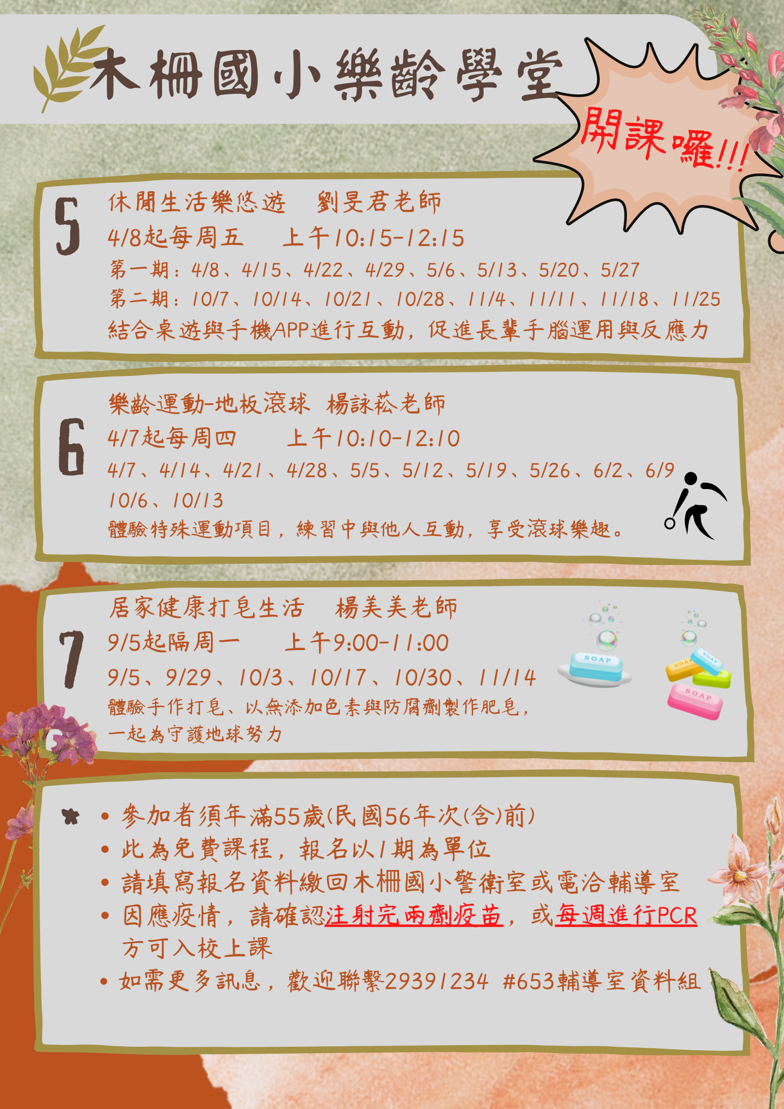 即日起可至學校警衛室索取報名表報名樂齡學堂,因應疫情不適合進入校園,請填寫完貼完身分證明文件後繳回警衛室。