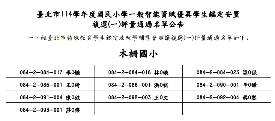 一、通過複選一名單如附件一,通過名單已發下信件通知。