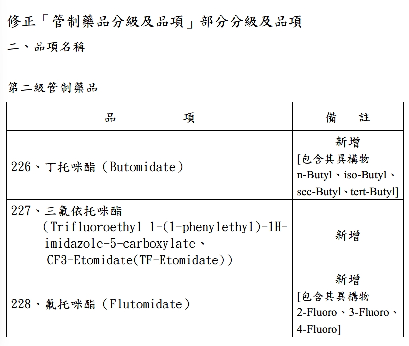 修正「管制藥品分級及品項」部分分級及品項