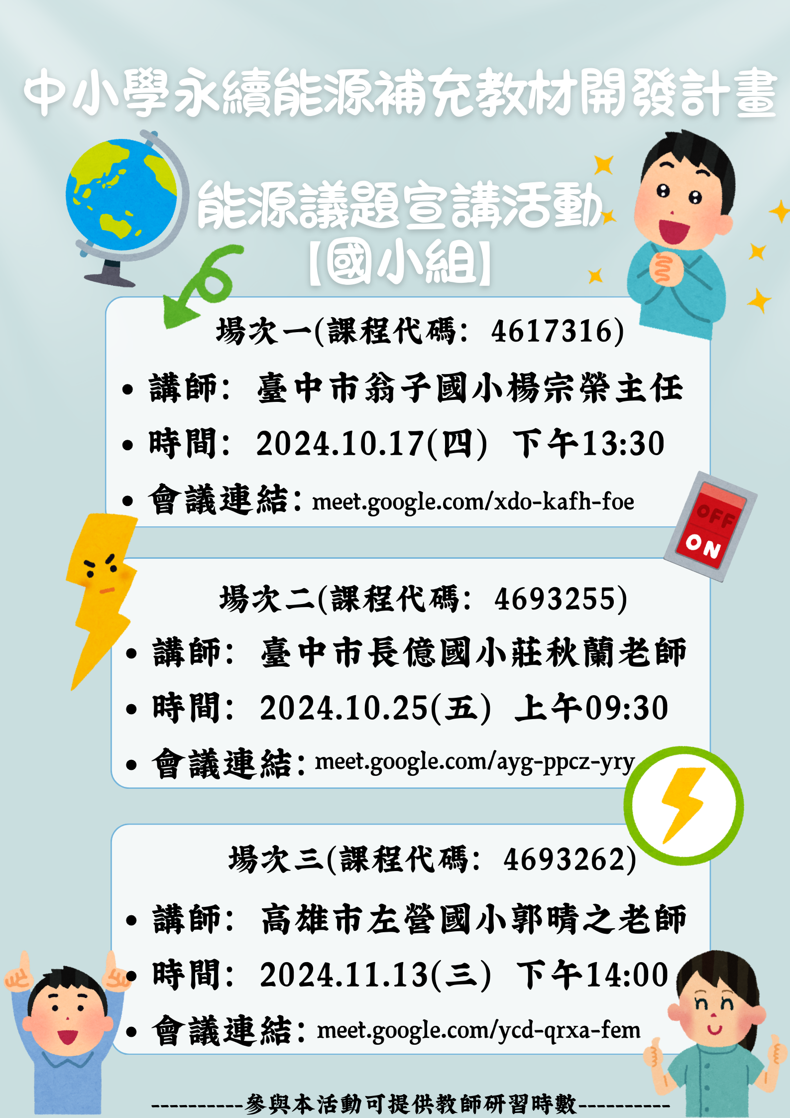 Google Meet連結:meet.google.com/rpx-zyjc-syg。