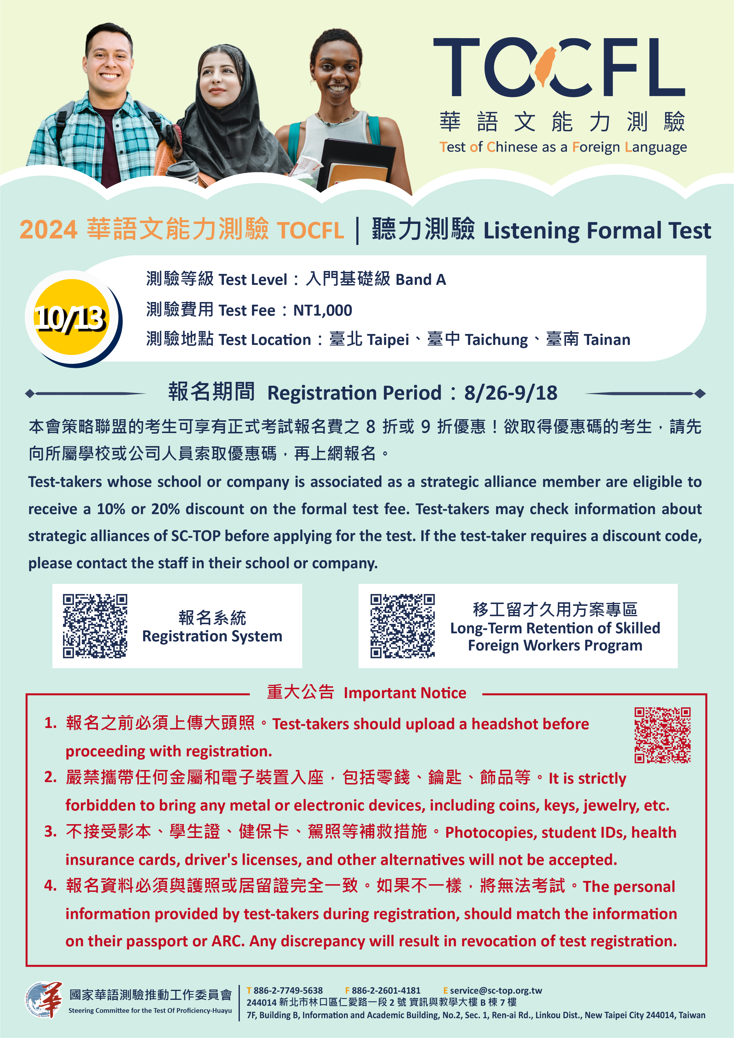二、113年10月13日聽力測驗正式考試說明如下: