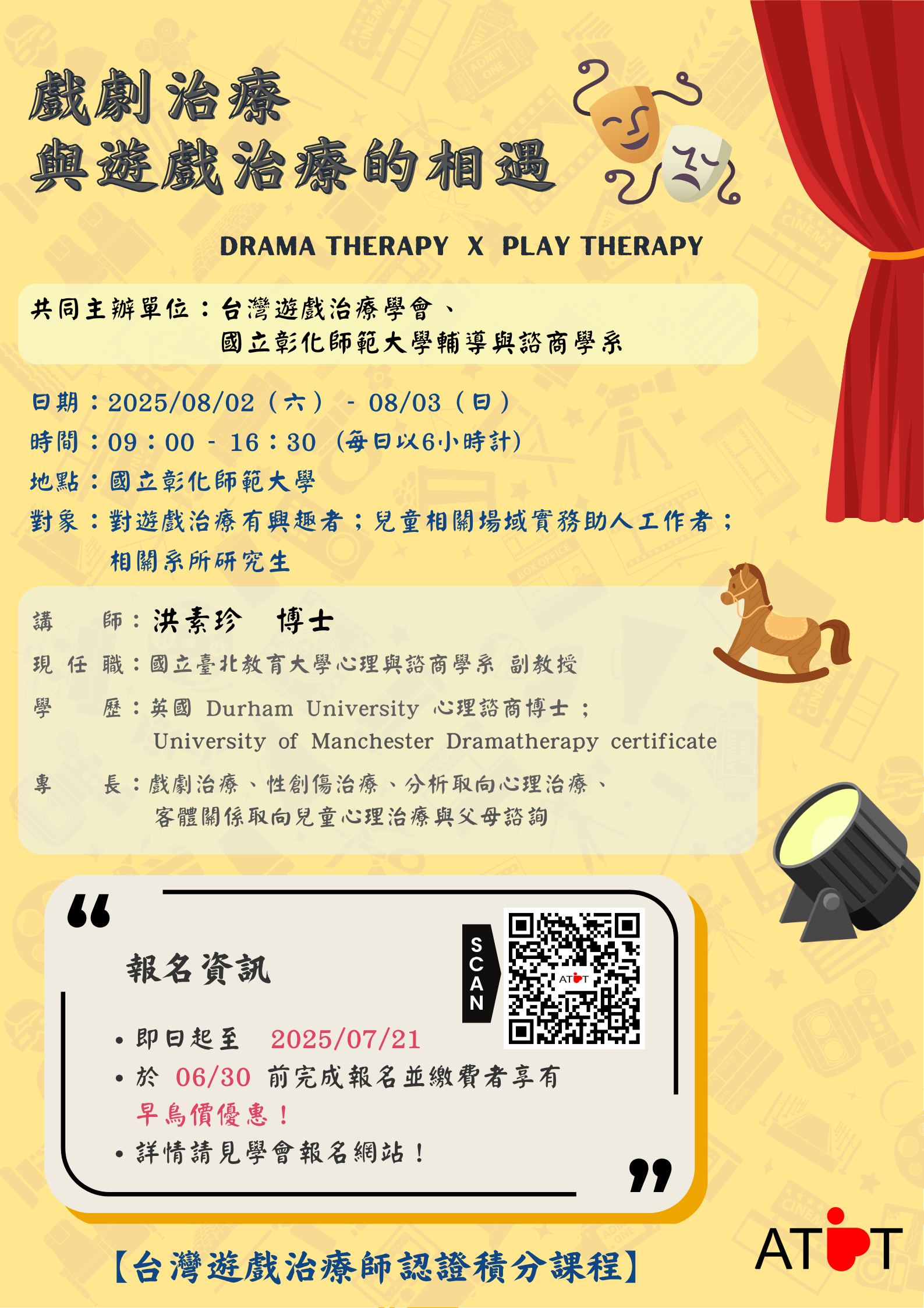 一、戲劇治療與遊戲治療的相遇,課程時間及相關資訊。